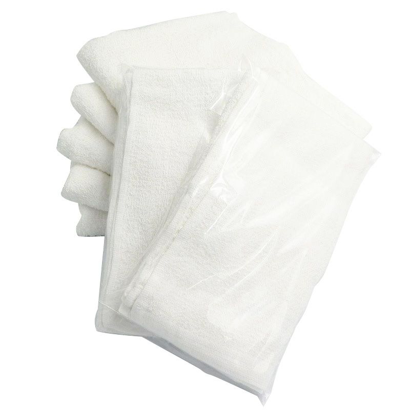 180匁 (56g) フェイスタオル白無地 総パイル ポリ袋入り (340×860mm) 300枚